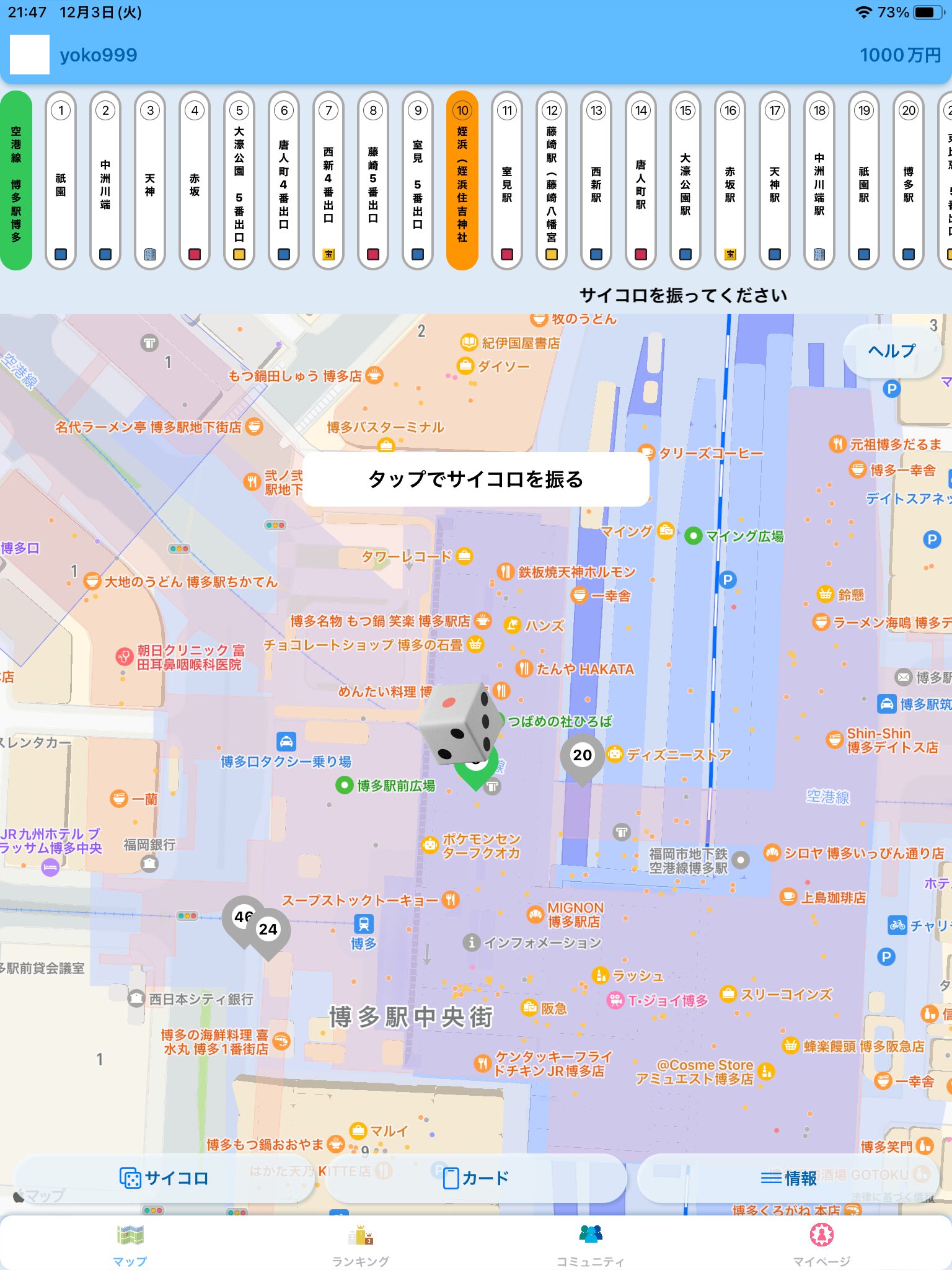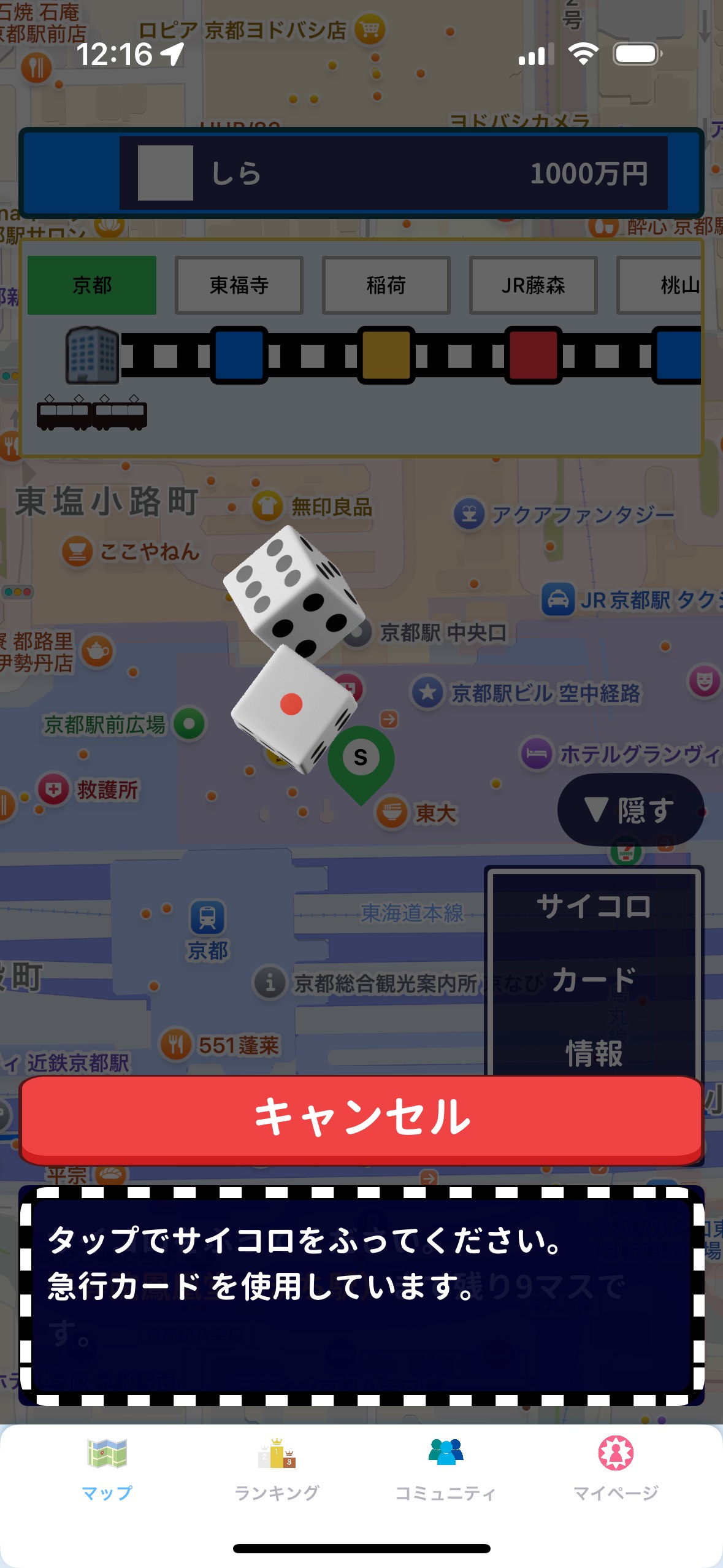 ※ 物件マスでは沿線に実際にある物件をゲーム上でリアルに買うことができ、ゴール時に収益が加算されます
